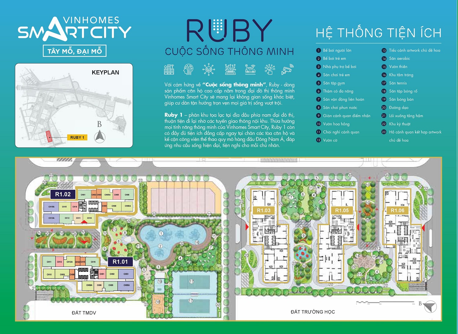 Phân khu Ruby 1 là phân khu ra mắt đầu tiên của dòng sản phẩm cao cấp Vinhomes Ruby.